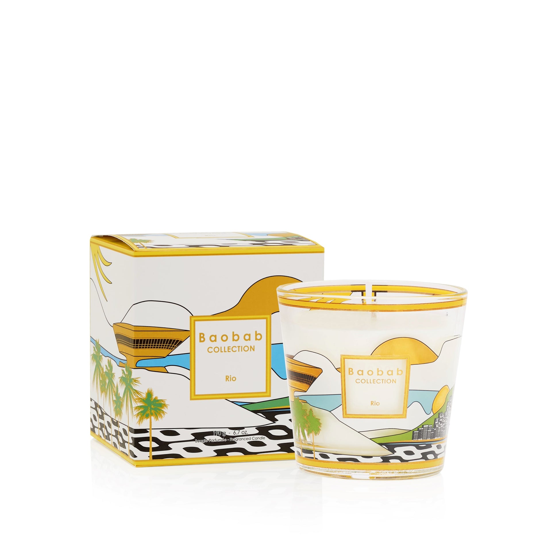 Embrace the exotic vibes of Rio with our Rio-scented candle. Admire the gold and colorful silkscreen print featuring Rio's iconic architecture - from Oscar Niemeyer's Museum of Contemporary Art to the cobblestone beaches of Ipanema and the distant view of Sugarloaf Mountain. Bask in the tropical warmth of bergamot, green tea, and musk as you relax amidst the bustling city.