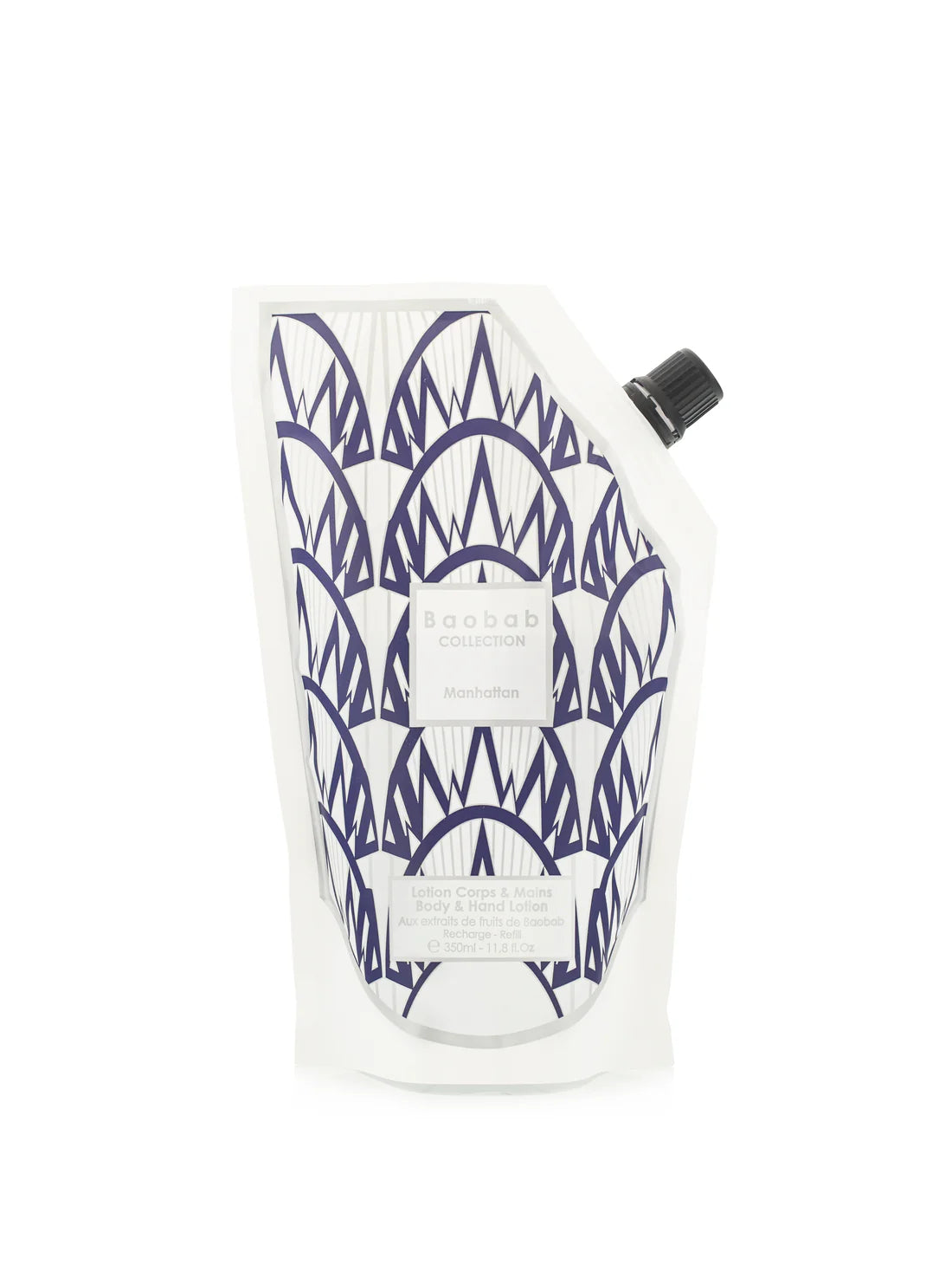 Our Manhattan body & hand lotion refill offers 350 ml of goodness to keep your glass bottle happily topped up! Dive into an eco-friendly habit with this fresh and lively blend of cypress, lavender, and papyrus. This unique scent captures the buzz of a springtime Manhattan stroll—imagine a sudden rainstorm clearing the air, the city warming up with a metallic zing, and the breeze carrying the crisp essence of Central Park right to you. Finish your day with the timeless aroma of papyrus, just like a visit to the Metropolitan Museum. Refresh your skin and your senses with every use!
