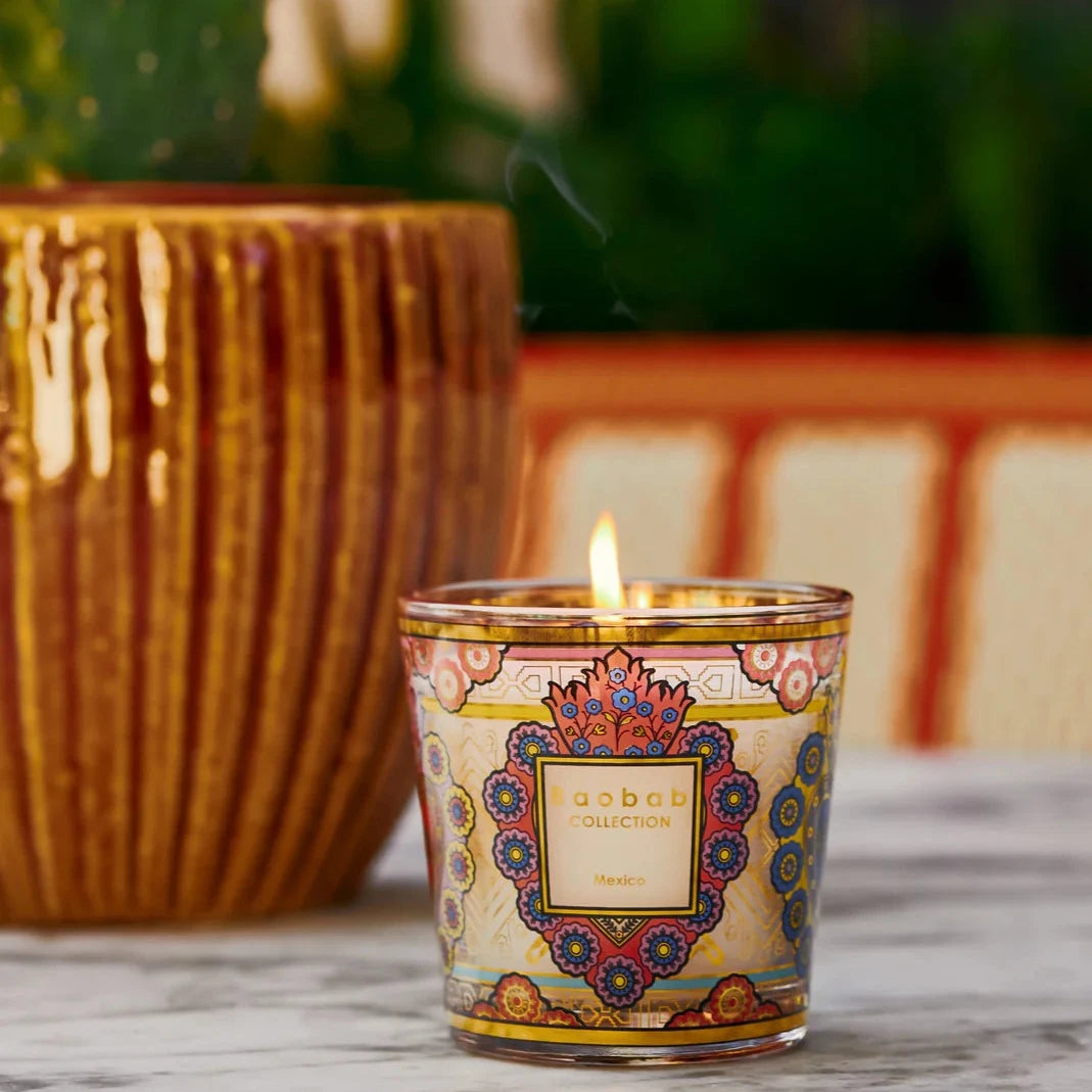 Light up your space and manifest your desires with the My First Baobab Mexico Max 8 candle. Adorned with ex-voto heart motifs and a subtle embroidery design, this candle brings a touch of Mexican crafts and Frida Kahlo's spirit into your home. Make a wish or give thanks, all while enjoying the sweet, scented glow of this unique candle.
